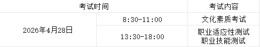 1.高中生、社会考生和退役士兵考生:职业适应性测试,满分300分,测试方式为面试或操作考试。职业适应性测试主要考察考生的逻辑思维、社会观察、分析和解决现实问题、职业潜能等能力。